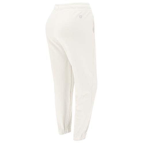 Pantaloni da Donna sportivi in jersey pesante elasticizzato in colore Lily White Direct Dyed in capo con elastico logato visibile in vita.